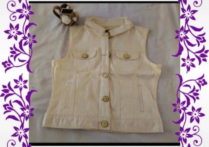 Belle veste en jeans sans manches jaune pâle Jamais portée Mesures sur les dernières photos 📏Taille notée : 12ans 🏷️Marque : orchestra #12ans_laurence8777