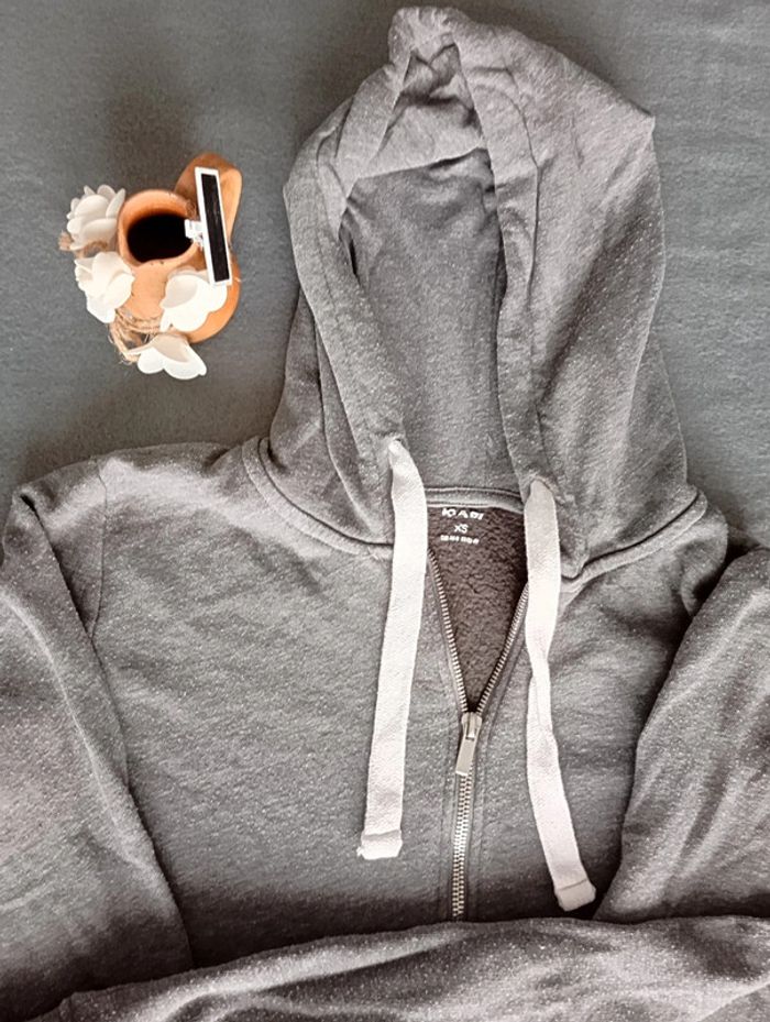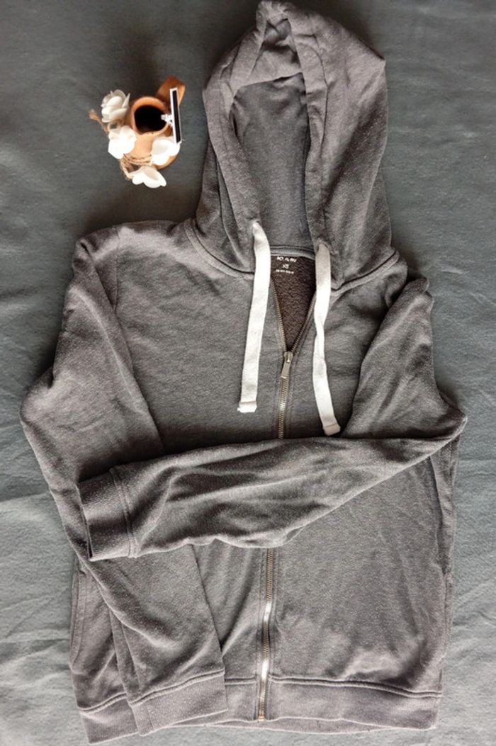 Gilet à capuche gris. Lacet au niveau de la capuche. Poche de chaque côté. Bouloche un peu. Beaucoup porté mais encore en très bon état Taille notée : XS/ EUR 34 / IT 38 / RU 40 Marque : Kiabi #XS_laurence8777 #T34_laurence8777
