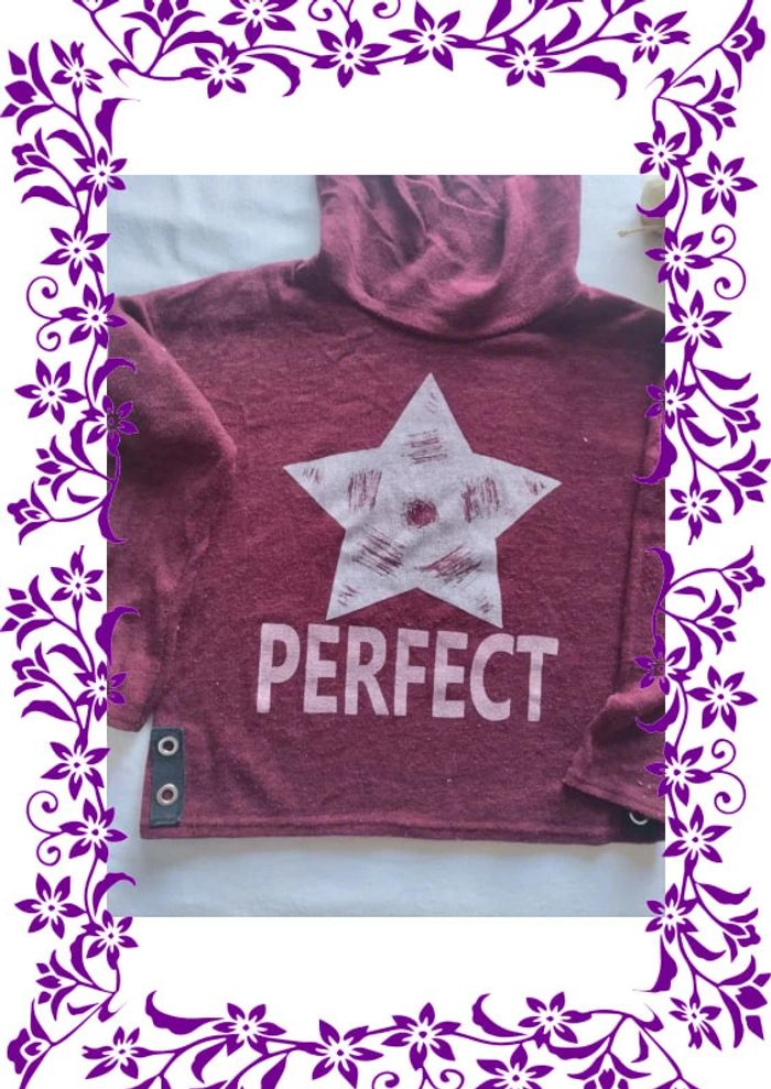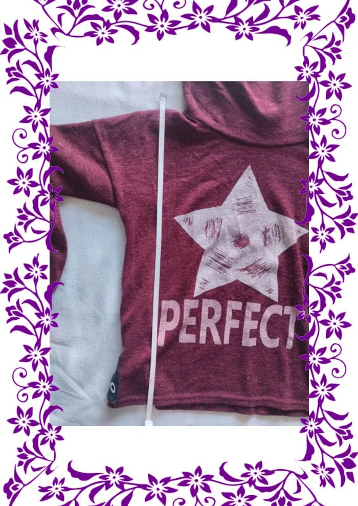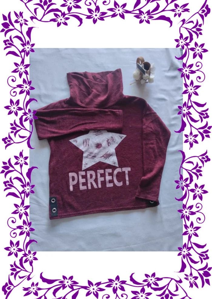 Pull fin avec col montant bordeaux Etoile argentée en motif avec inscription "Perfect" (normal c est pour une femme😁) Il bouloche un peu mais est encore en très bon état Taille notée : 2XS Peu aller du 14ans au 32 Marque : influx Réduction sur les lots activée #fille14ans_laurence8777