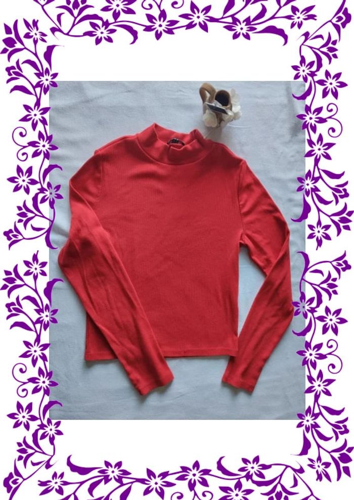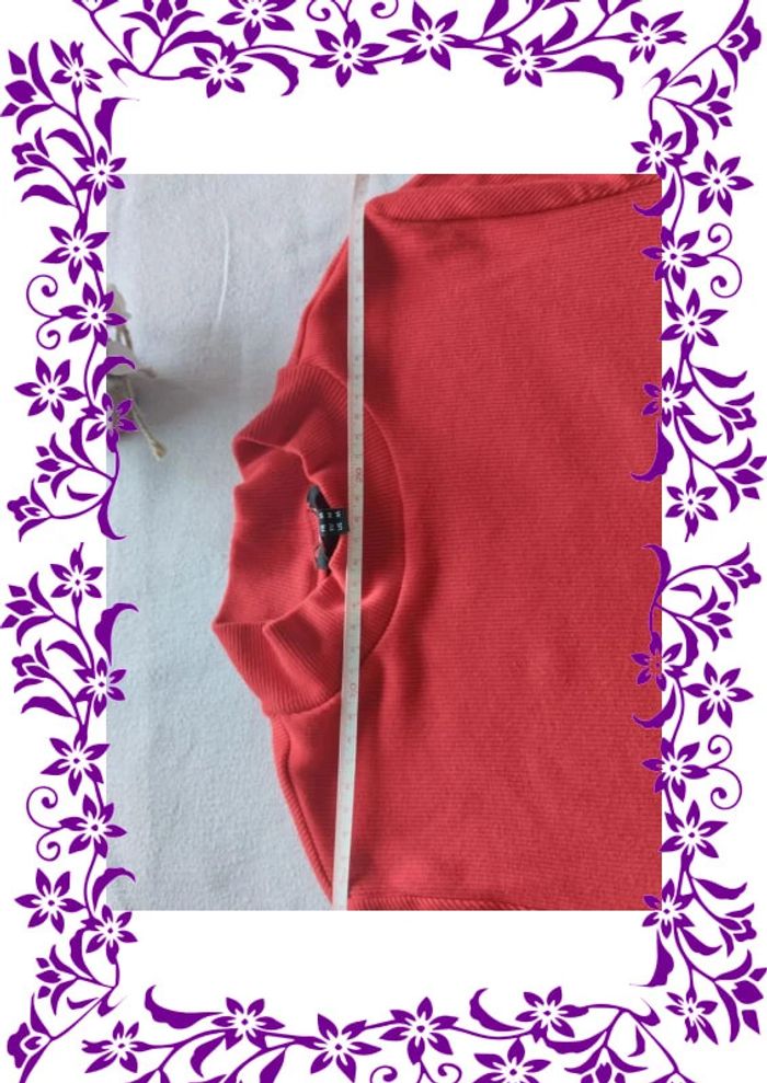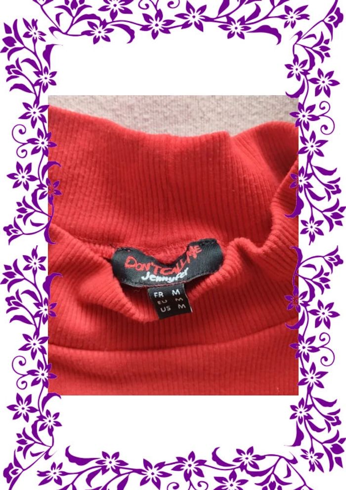 Pull côtelé rouge a col rond Il est elasthane Des fils commencent un peu à partir sur le bas Mensurations sur les dernières photos Taille notée : M Marque : Jennyfer Réduction sur les lots activée #T38_laurence8777