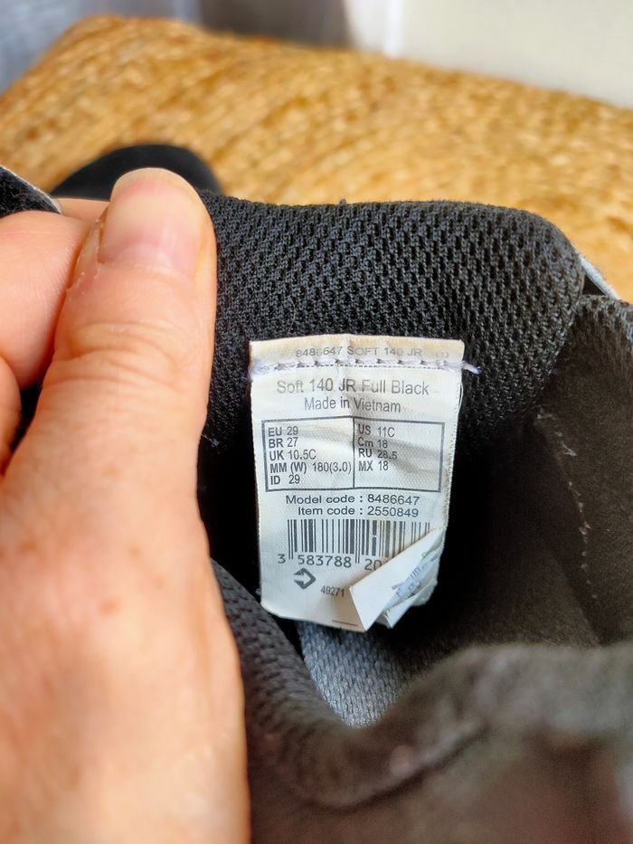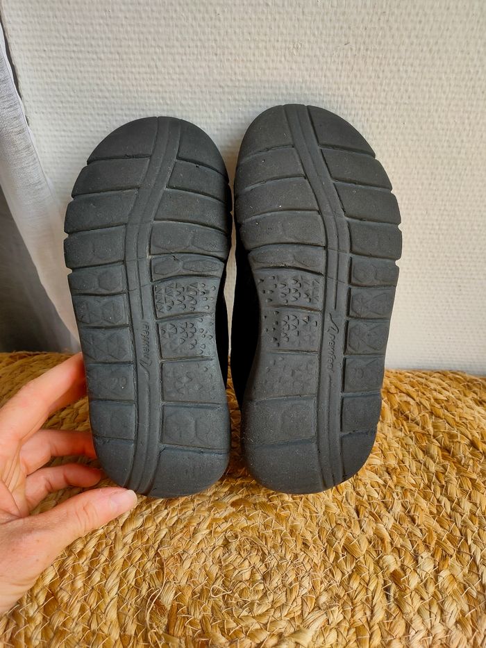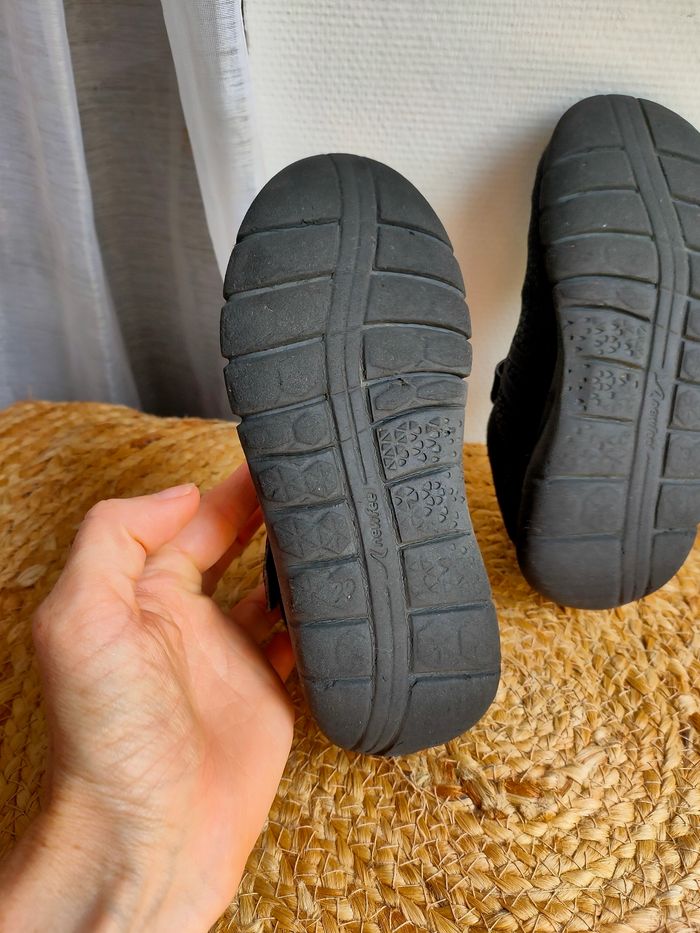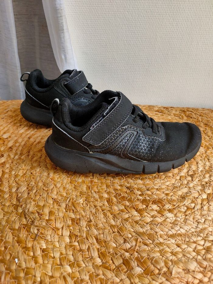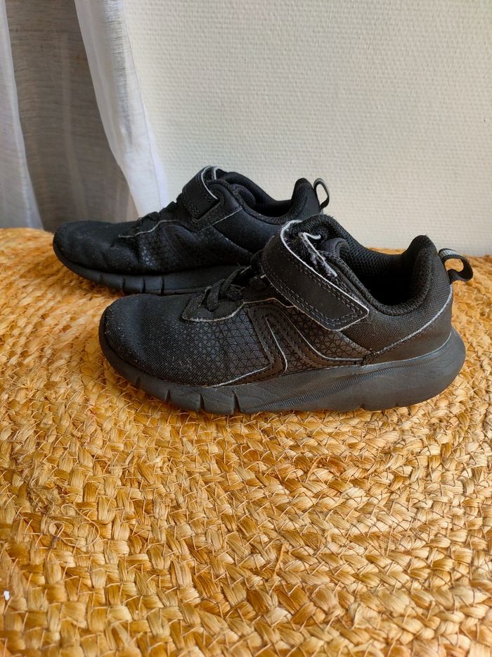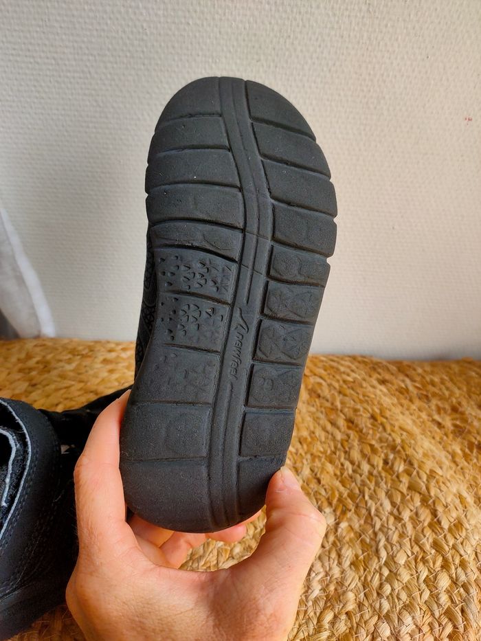 Basket souple coloris noir, lacet élastique, fermeture scratch, marque Newfeel, taille 29. Elles ont été porté par alternance avec d'autres chaussures, elles sont en bon état. Prix ferme, PAS DE NÉGO !!!