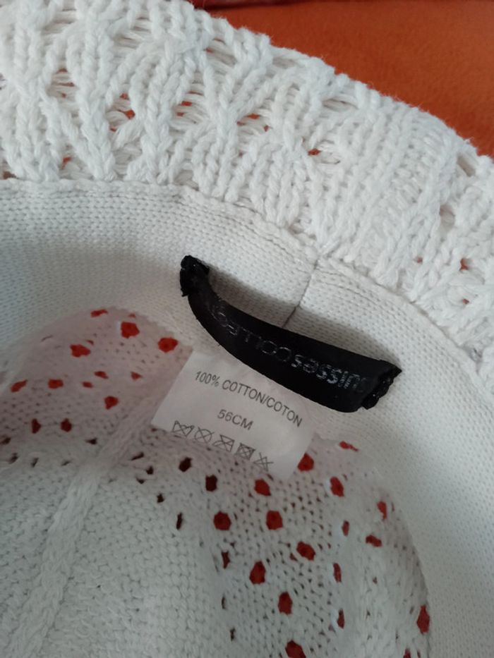 Chapeau bohème blanc en coton avec fleur rose - photo numéro 1