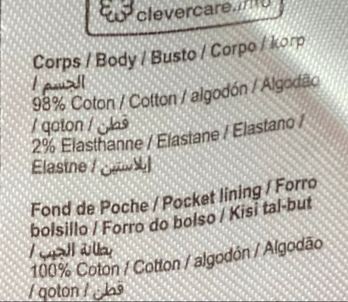 Pantalon Sans tache Une pression pour l’ouverture du pantalon Ceinture élastique réglable à intérieur 98% coton 2% elasthanne Fond poche 100% coton.