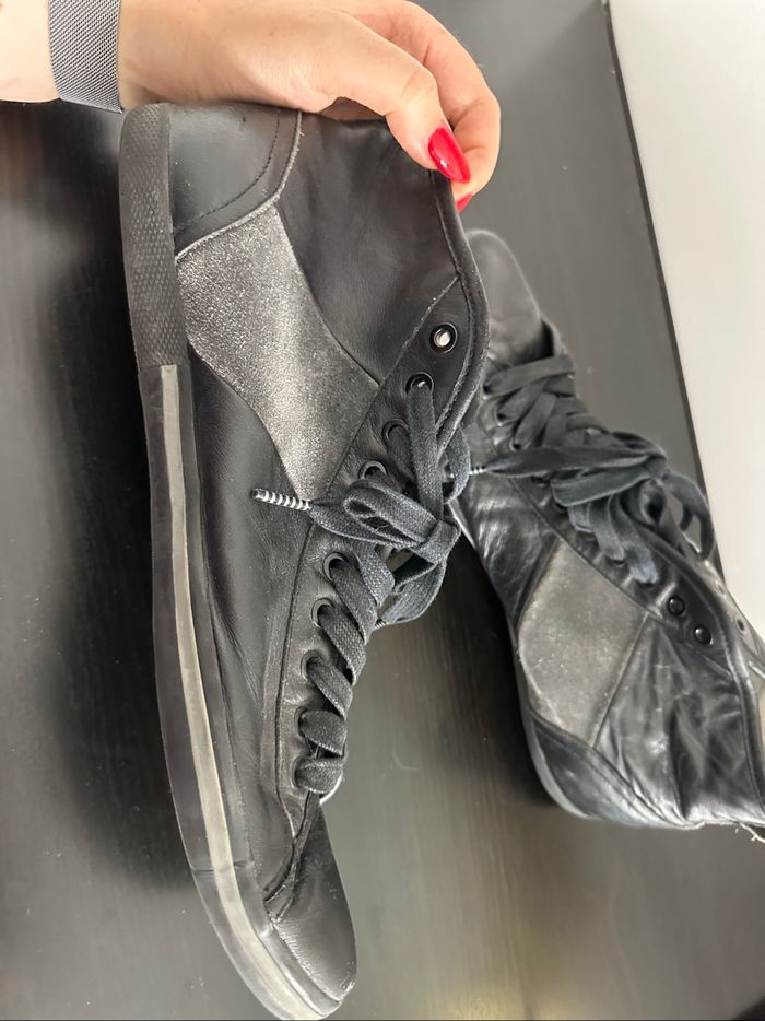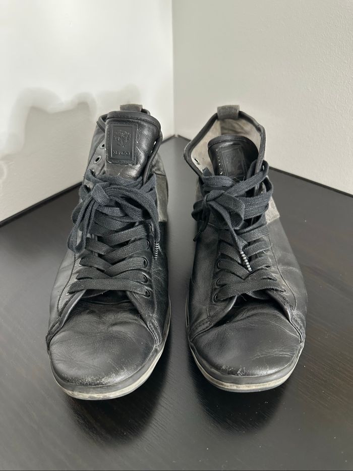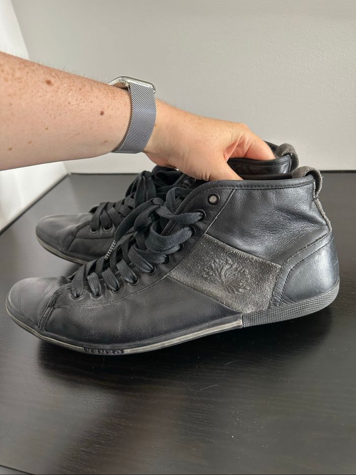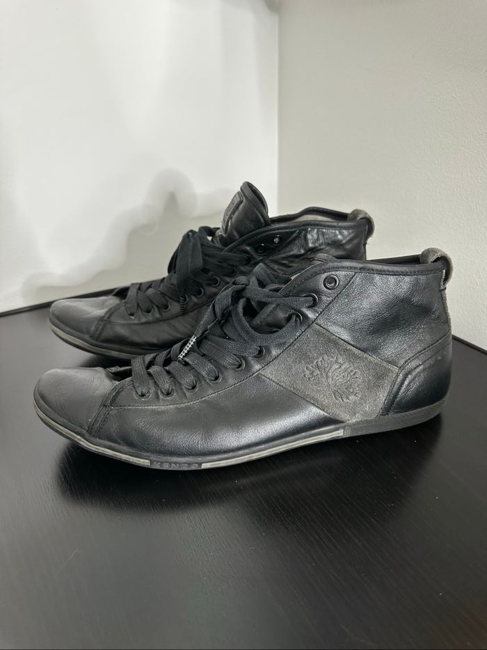 Baskets - Excellent état (usure normale, voir photos) - Pointure 45 - En cuir véritable et velours - Noir et gris - Modèle Triton - Se ferme avec des lacets - Marque Kenzo