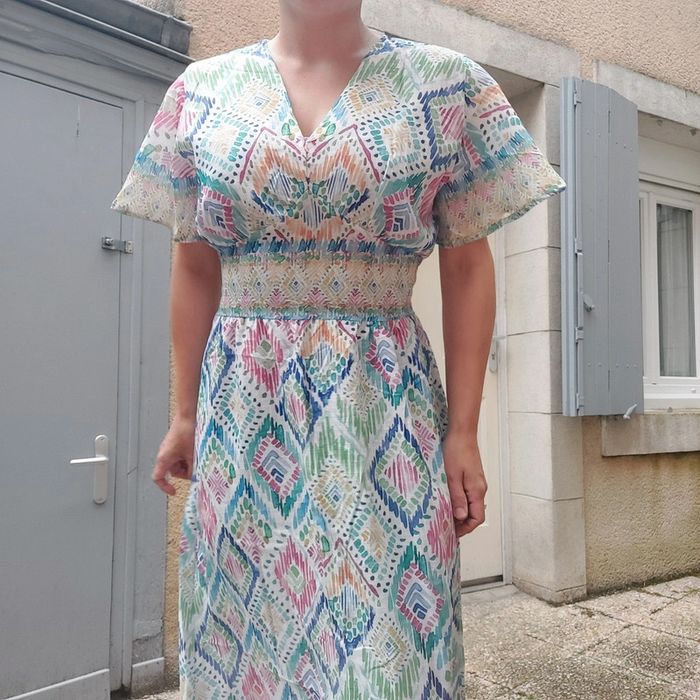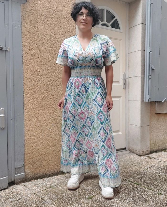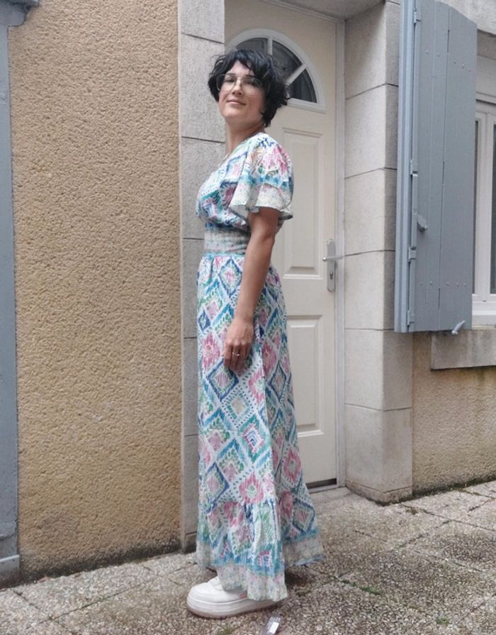 Melange de viscose, coton et lin 😍 Élastique sous la poitrine Je fais 1m62 et elle me va un peu longue