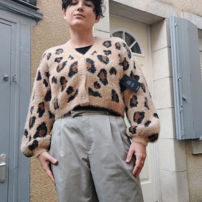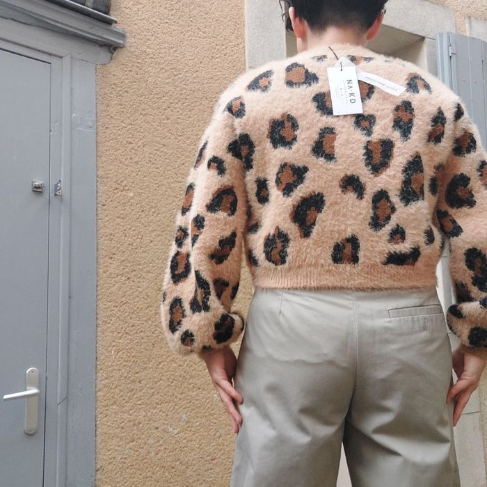 Il est très elasthane donc même en faisant M je rentre dedans alors que l'étiquette est en taille xs Mais est prévu en oversize, ira bien à xs/s Pilou à motif léopard, très tendance