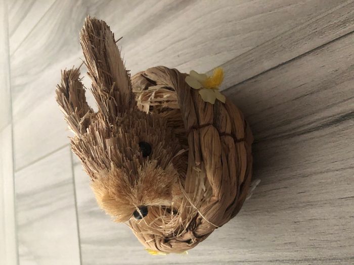 Jolie décoration d'un lapin dans son panier 11x12 cm