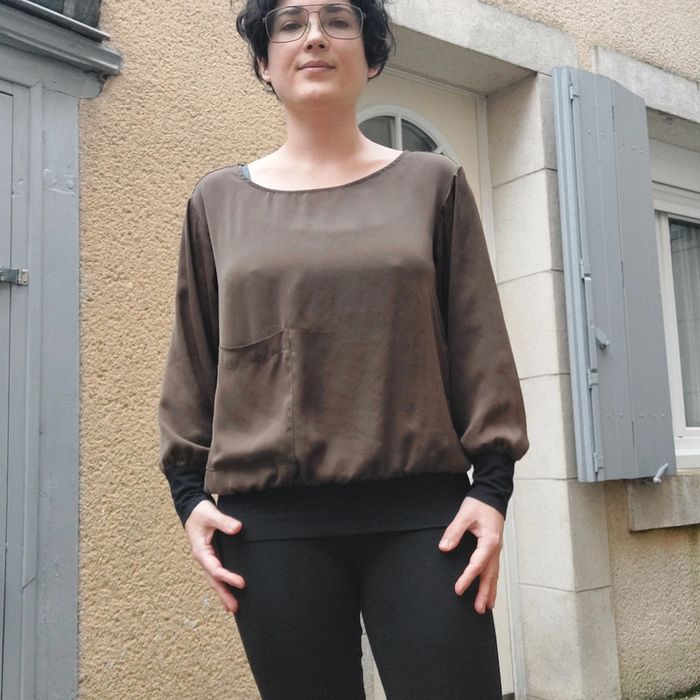 Matière satinée kaki, toute douce Élastique hanches et poignets
