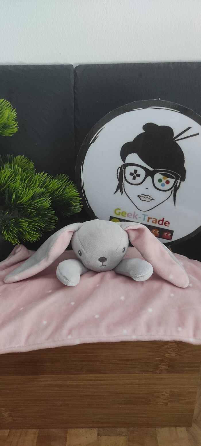 Doudou plat lapin gris rose étoiles simba toys carré Attache Tétine DD003105 - photo numéro 1