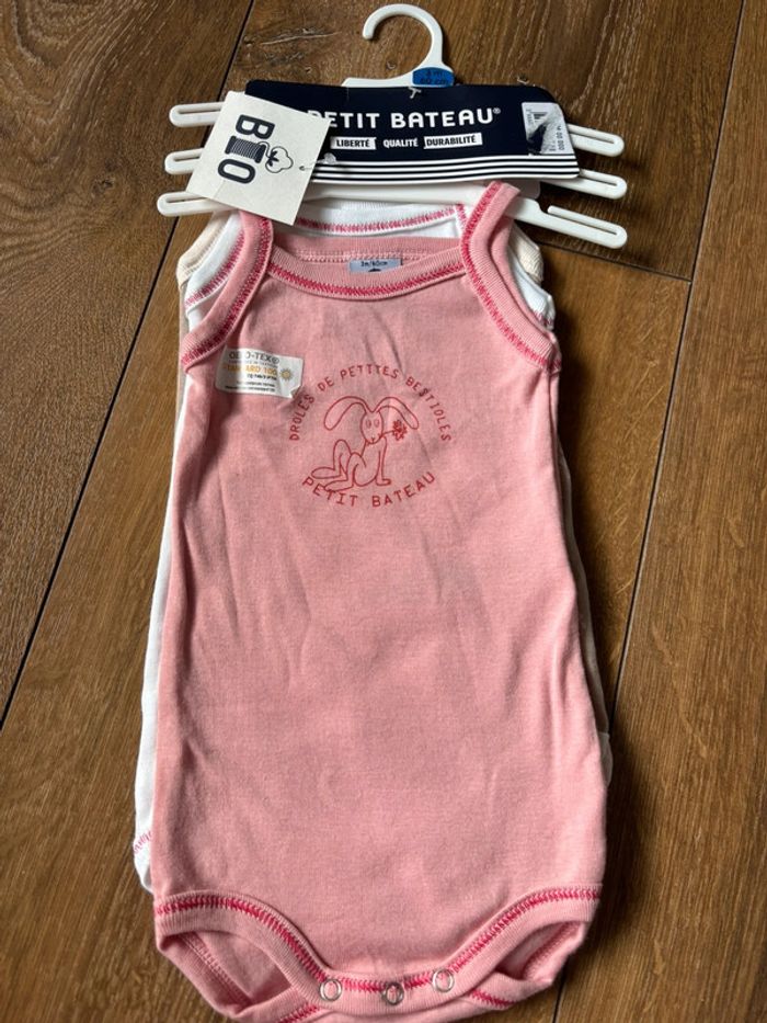 Lot 3 bodies bretelles petit bateau 3 mois fille neufs - photo numéro 2