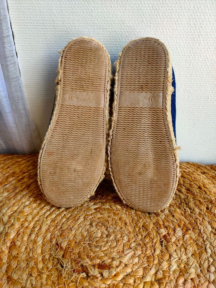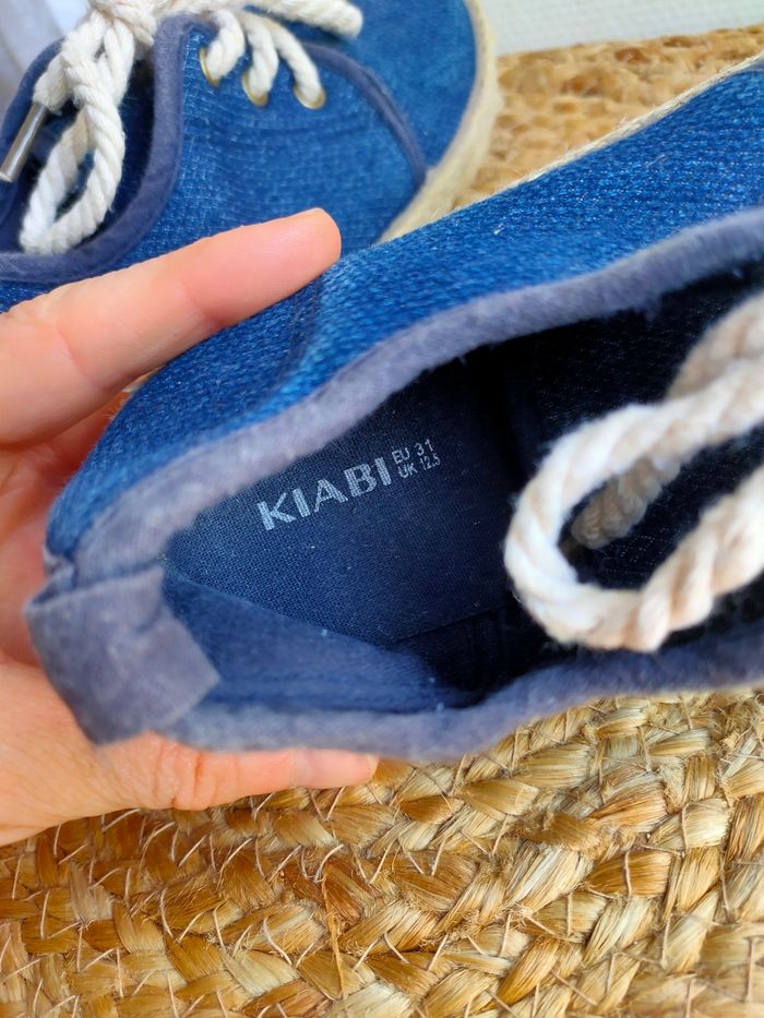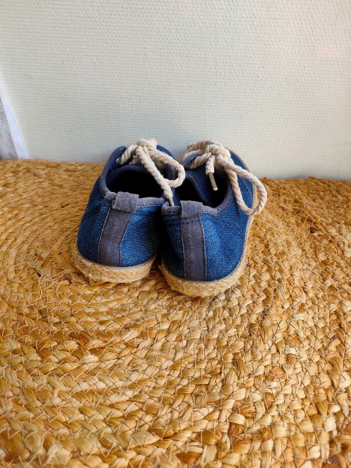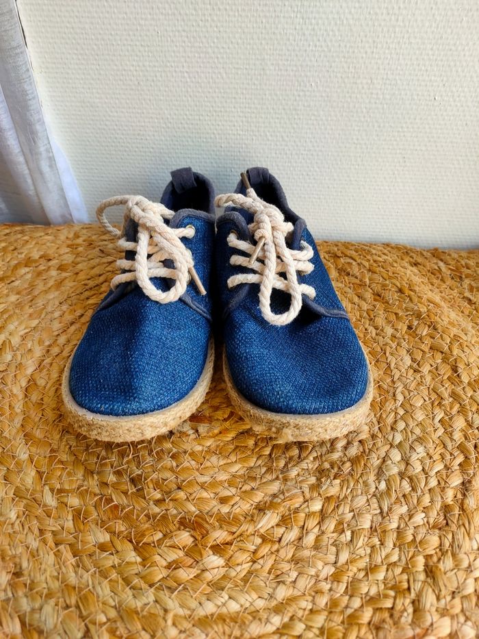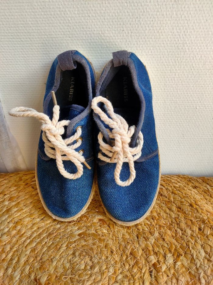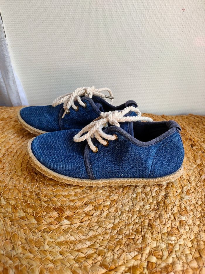 Espadrilles a lacets de couleur bleu. Marque Kiabi, taille 31. Elles sont en très bon état. Prix ferme, PAS DE NÉGO !!