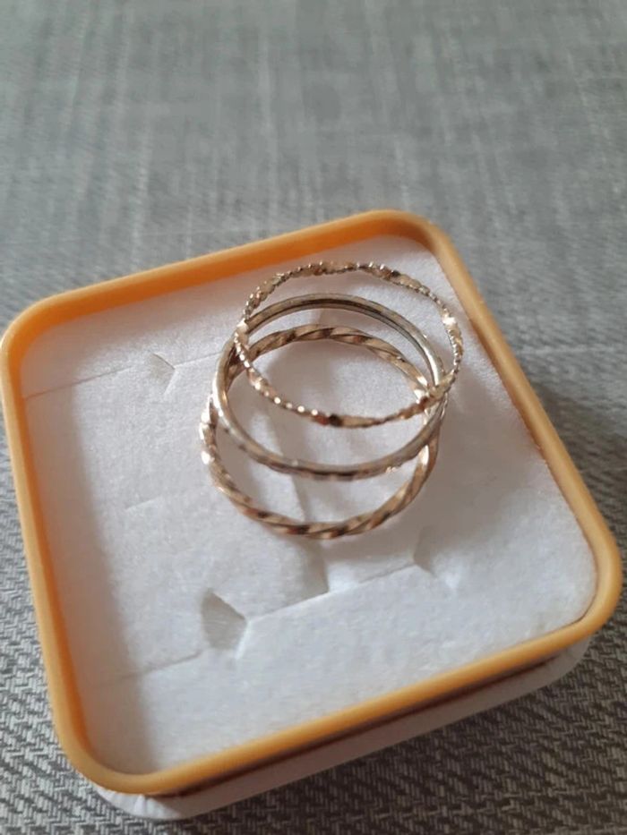 Bague triple brins 18,1 mm Bague fantaisie neuve composée de 3 anneaux à motif différents. Diamètre intérieur 18 mm. Nombreux bijoux dans ma vitrine.
