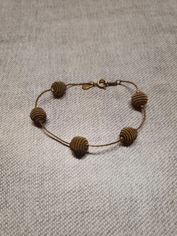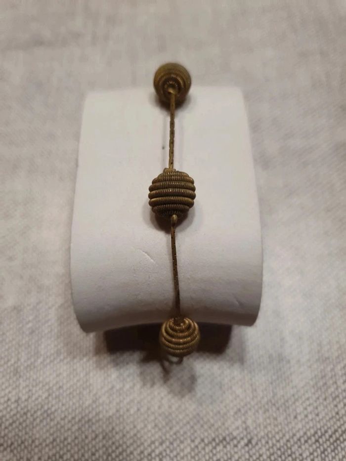 Bracelet sphère Bracelet métal fantaisie. La couleur tire plus vers le bronze que sur le doré. Le collier assorti est également en vente dans ma vitrine. Nombreux bijoux dans ma vitrine.