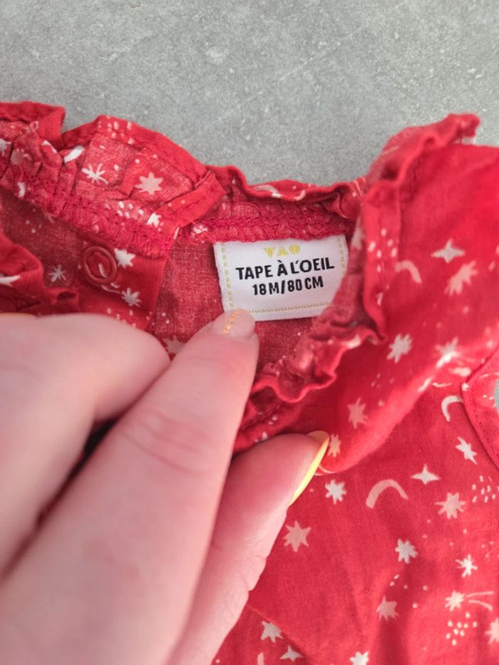 Robe été bébé fille débardeur rouge motifs 100% coton T18mois TBE tape à l'œil - photo numéro 3