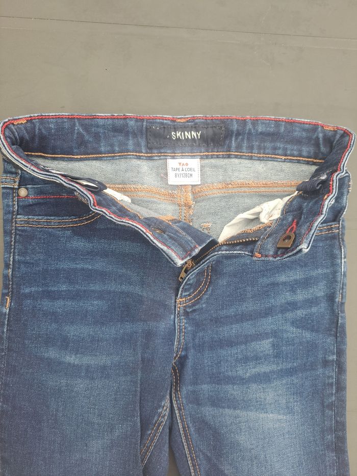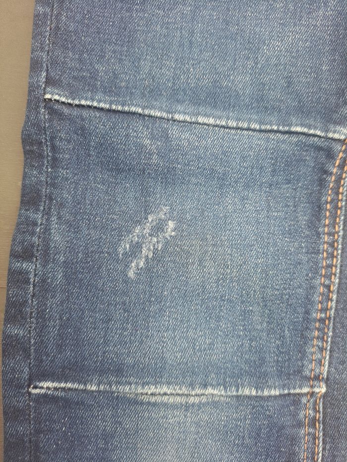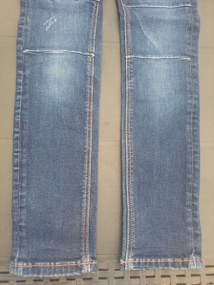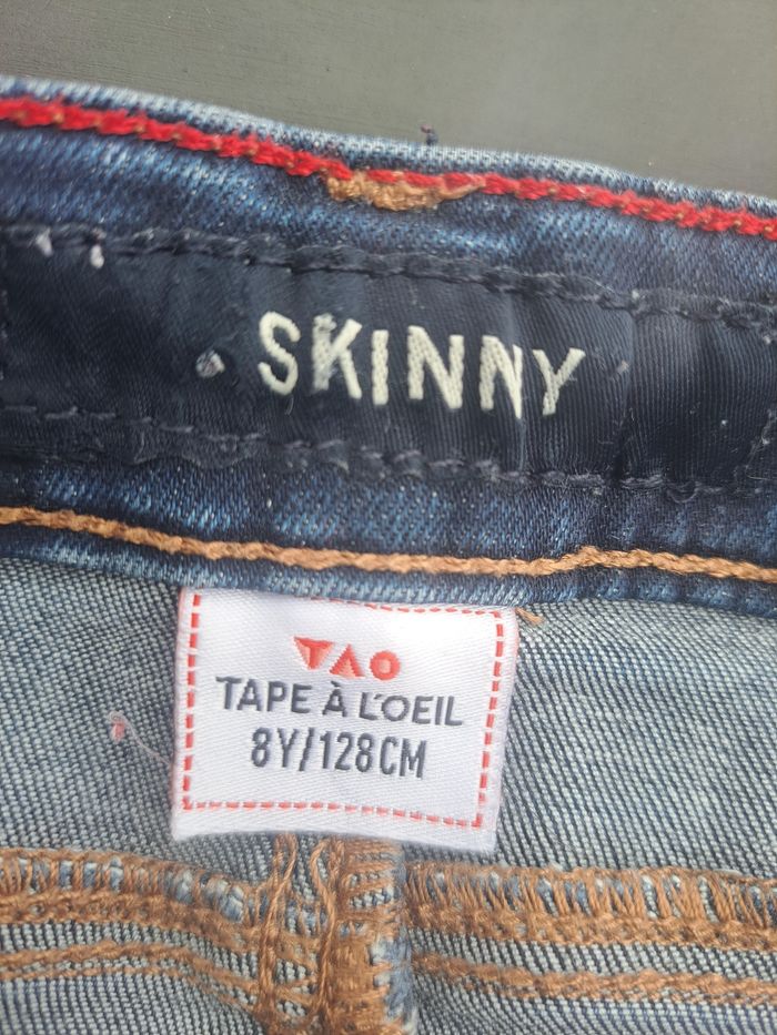 Peu porté. Skinny. Ferme avec 1 bouton glissière et une fermeture. Réglable à la taille. 3 poches devant et 2 poches plaquées derrière. Stretch. 2 traces d'usures, d'origine. Motif en bonne état. Pas de trou, ni de tâches.