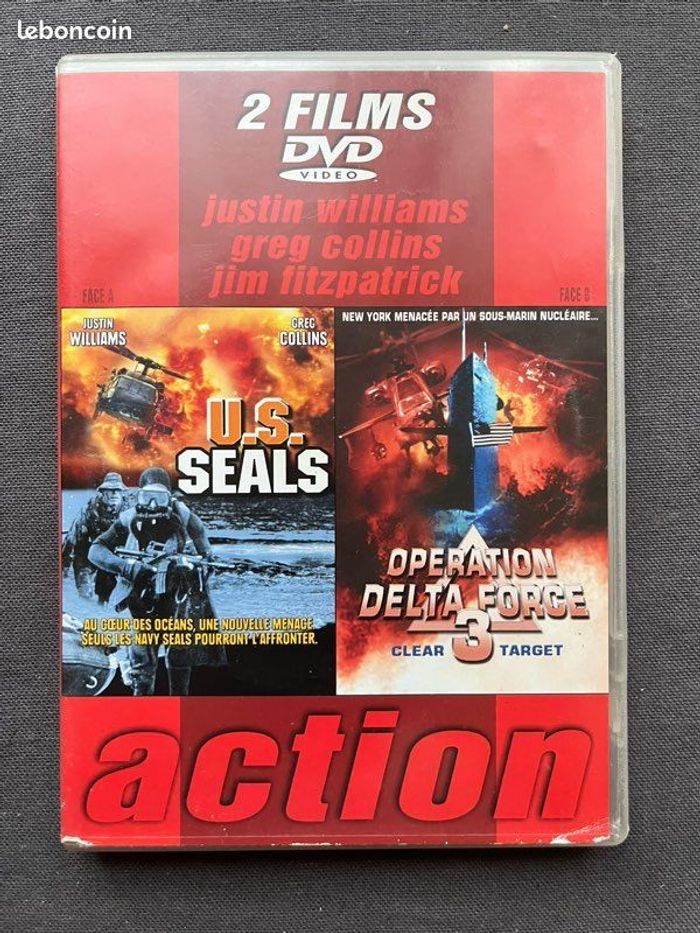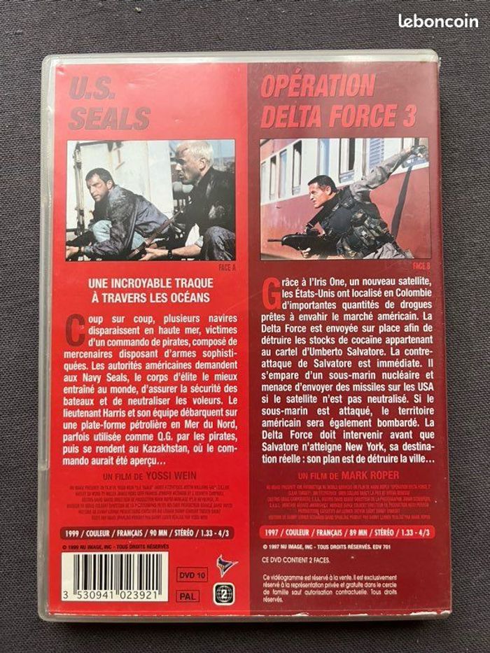 Vends DVD de 2 films d’action « US Seals » et « Opération Delta Force 3 ». Le boîtier présente de légères traces mais bon état général. Le DVD est en très bon état. Fonctionne parfaitement. Il pèse 94g. Idéal pour les amateurs de cinéma, films d’action ou collectionneurs.