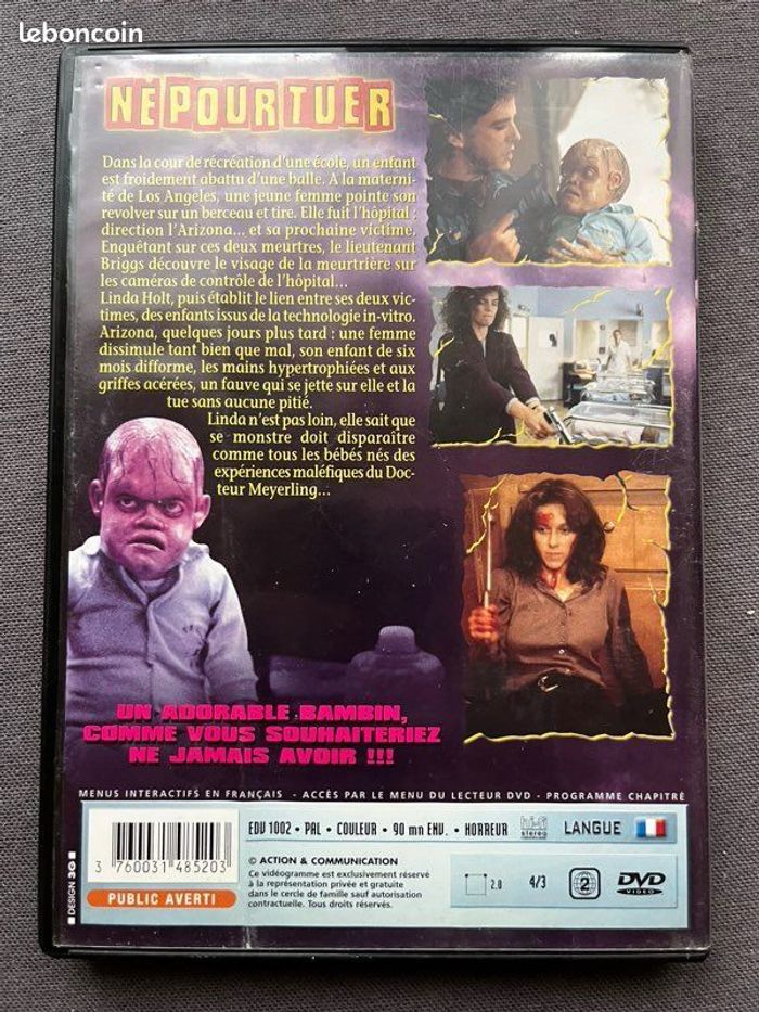 Vends DVD du film « Né pour tuer ». Le boîtier présente de légères traces mais rien d’important. La languette de fermeture est cassée sur la partie supérieure. Le DVD présente des traces mais fonctionne parfaitement. Il pèse 101g. Idéal pour les amateurs de cinéma ou collectionneurs.