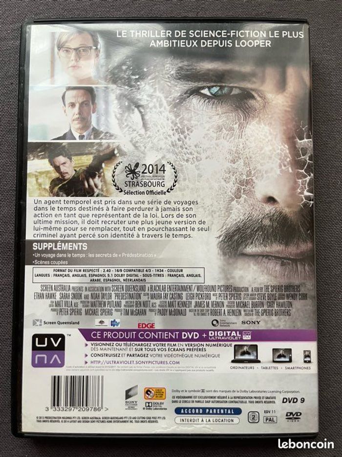 Vends DVD du film « Prédestination » avec Ethan Hawke. Le boîtier est en bon état général. Le DVD est en très bon état. Fonctionne parfaitement. Il pèse 62g. Idéal pour les amateurs de cinéma, fans de l’acteur ou collectionneurs.