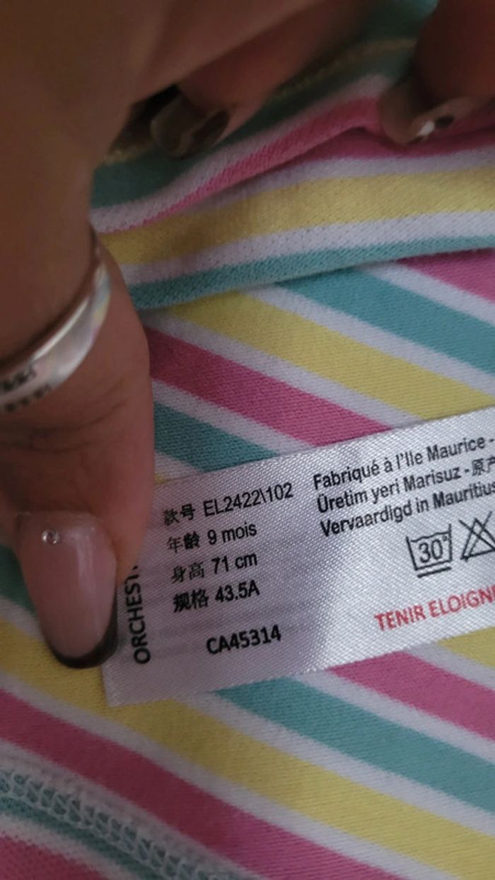 Robe à col Marque Orchestra Couleur blanc rose jaune Taille 9 mois 71cm Très bon état Envoi rapide et soigné #9moisfilleprincessececile02130