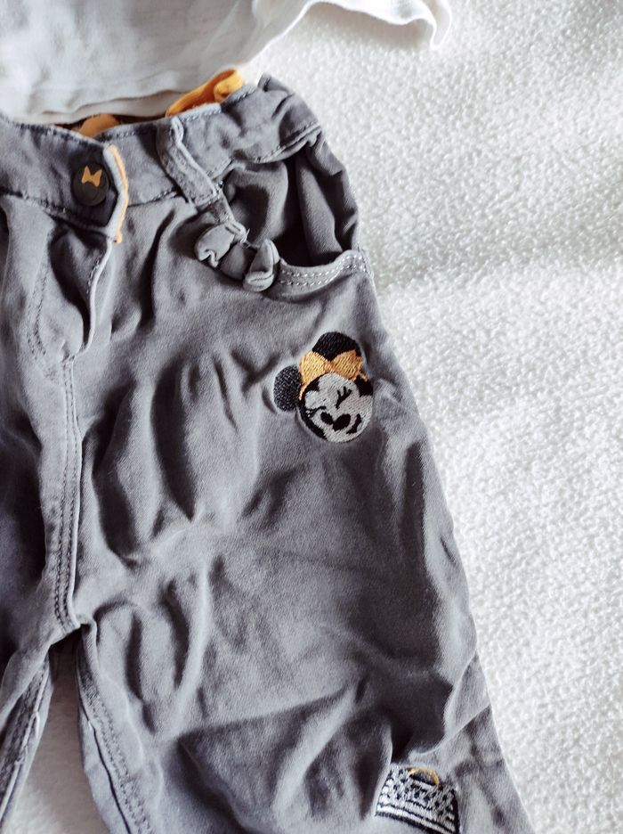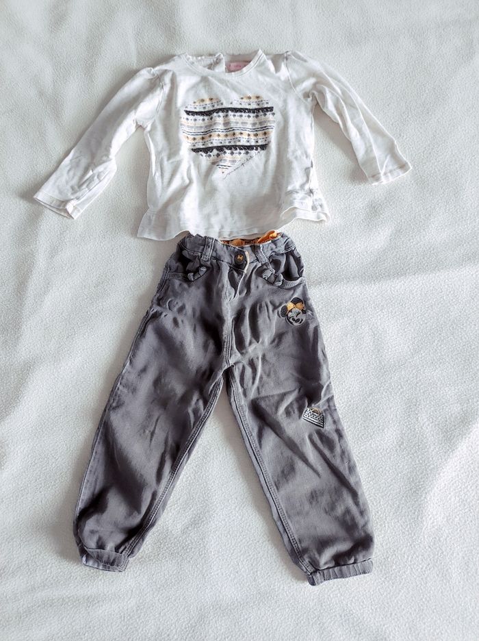 Ensemble 24 mois porté mais en très bon état. Jean souple. Taille réglable. Marque Disney. Tee-shirt Gémo.