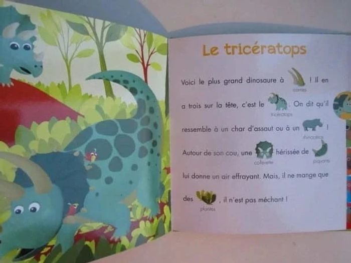 Un premier documentaire, accompagné d'illustrations tendres, pour partager la vie des dinosaures. Si tu ne sais pas encore lire, tu peux t'aider des mots - images. Editeur : Lito Dimensions : 23 x 24 cm Âge ; 5 - 6 ans Livre en très bon état Je vends d'autres livres sur les dinosaures #phil_peg_dinosaures ou #phil_peg_premièreslectures #dinosaures #apprentissagelecture