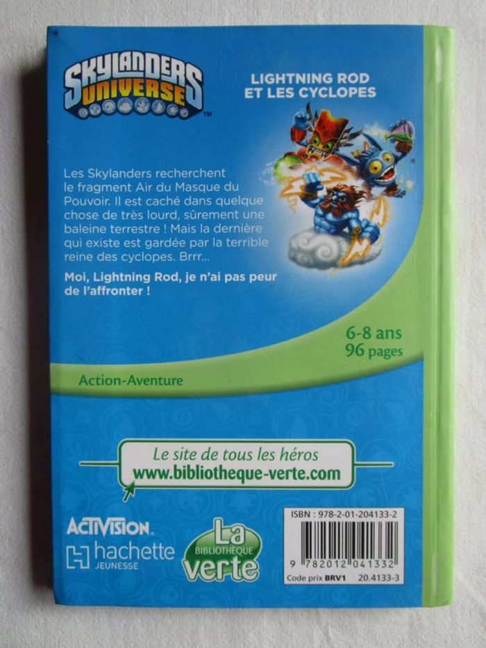 Lightning Rod doit partir à la recherche du fragment suivant du Masque du Pouvoir ! C’est l’élément Air, forcément dans quelque chose de vraiment très lourd… Et si c’était la dernière baleine terrestre, qui vit au zoo des cyclopes ? Éditeur ‏ : ‎ Hachette Jeunesse Poche ‏ : ‎ 96 pages Âge de lecture ‏ : ‎ 8 - 11 ans Dimensions ‏ : ‎ 12.5 x 1 x 17.8 cm Livre en très bon état Je vends d'autres livres de la même collection. #skylanders