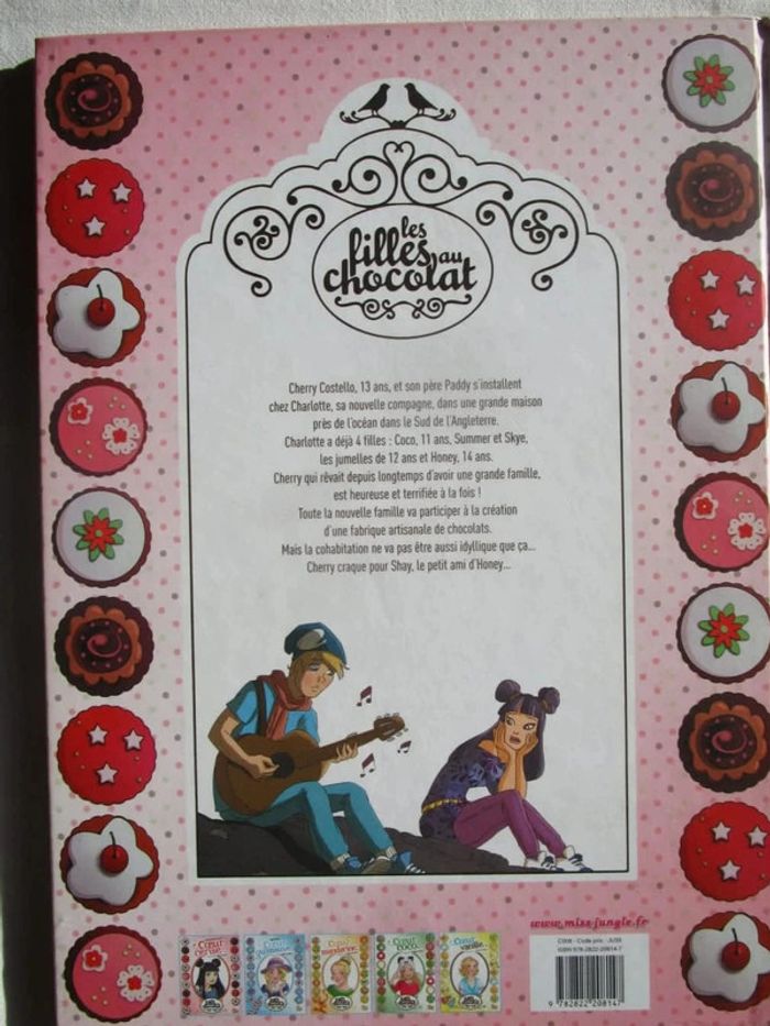 Cherry et son père Paddy s'installent en Angleterre chez Charlotte, sa nouvelle compagne qui a quatre enfants. Cherry est ravie de faire partie d'une famille nombreuse. Mais à peine arrivée, elle va craquer bien malgré elle pour Shay, le petit copain de Honey. Voilà qui ne va pas arranger la cohabitation déjà difficile avec Honey, la seule à ne pas accepter son nouveau beau-père ! Alors que tous participent à la création d'une fabrique artisanale de chocolats, Cherry se retrouve partagée entre l'affection pour ses nouvelles sœurs et le charme irrésistible de Shay. Éditeur ‏ : ‎ Jungle Relié ‏ : ‎ 48 pages Dimensions ‏ : ‎ 22.7 x 1 x 30.5 cm BD en très bon état Si plusieurs livres vous intéressent, n'hésitez pas à me contacter afin que je vous fasse un lot et ainsi profiter de réduction. #fillesauchocolat #coeurcerise