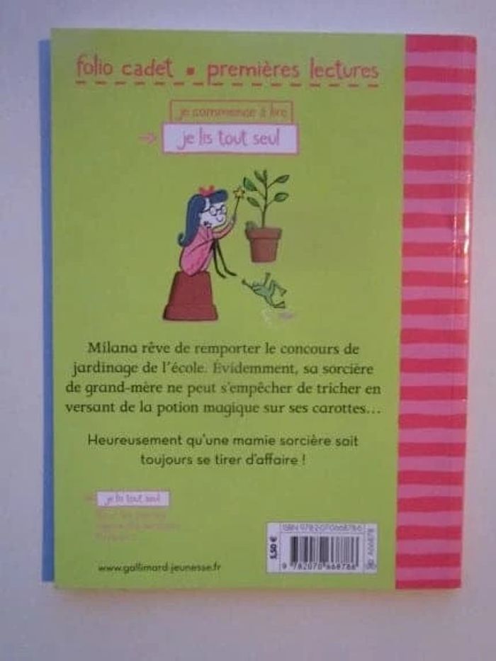 Milana rêve de remporter le concours de jardinage de l'école. Évidemment, sa sorcière de grand-mère ne peut s'empêcher de tricher en versant de la potion magique sur ses carottes...Heureusement qu'une mamie sorcière sait toujours se tirer d'affaire ! Éditeur ‏ : ‎ Gallimard Jeunesse 48 pages Âge de lecture ‏ : ‎ 7 - 8 ans Dimensions ‏ : ‎ 14.2 x 0.5 x 19 cm Livre état neuf #foliocadet #premiereslectures #grandmere #potager #potionmagique