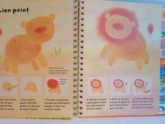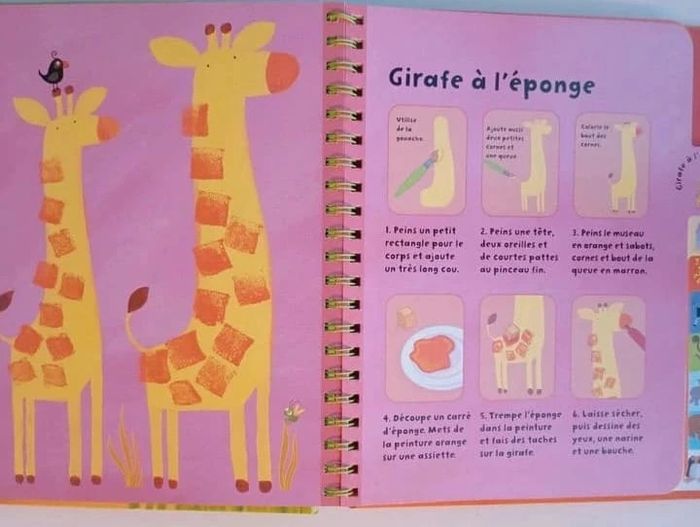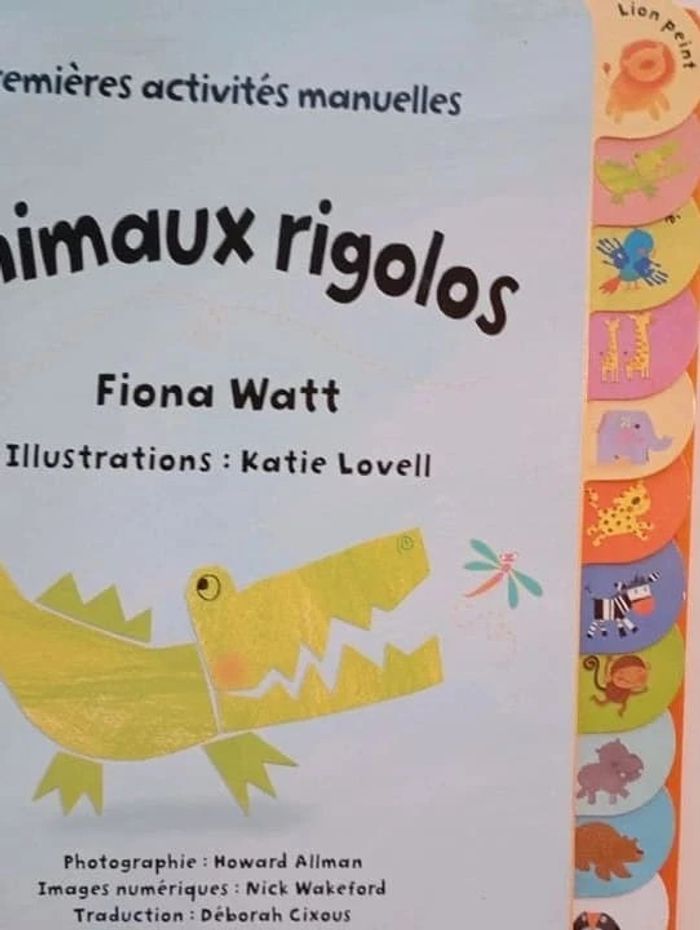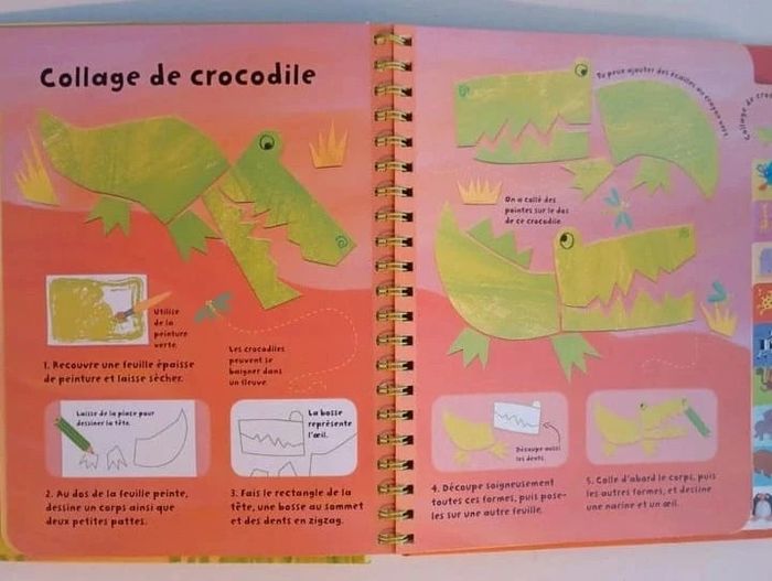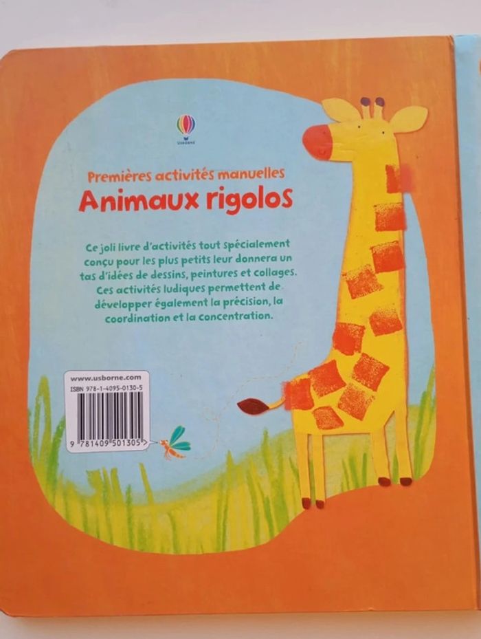 Un livre d'activités qui présente aux plus jeunes de jolies idées très simples de dessins, peintures et collages pour réaliser toutes sortes d'animaux bien sympathiques. Un crocodile en collage, des singes en tissu, un hippopotame peint à l'éponge ou encore des serpents à la craie... Un livre d'activités qui présente aux plus jeunes de jolies idées très simples de dessins, peintures et collages pour réaliser toutes sortes d'animaux bien sympathiques. À la fois ludique et idéal pour développer précision, coordination et concentration. Editeur ‏ : ‎ Usborne Couverture à spirales ‏ : ‎ 21 pages Âge de lecture ‏ : ‎ 3 - 6 ans Dimensions ‏ : ‎ 25 x 2.2 x 27.9 cm Livre en excellent état Je vends un autre livre de la même collection #phil_peg_activités #activitésmanuelles #animaux