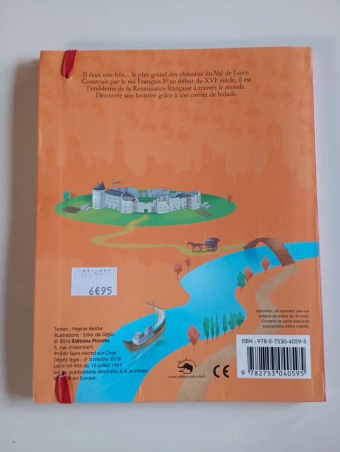 Un carnet qui accompagnera votre enfant lors de balades pour approfondir ses connaissances, découvrir le monde qui l'entoure, prendre des notes, dessiner, coller des photos et des autocollants. Il était une fois...le plus grand des châteaux du Val de Loire. Construit par le roi François 1er au début du XVIè siècle, il est l'emblème de la Renaissance à travers le monde. Découvre son histoire grâce à ton carnet de balade. Editeur : Piccolia 69 pages Dimensions : 16 x 20 cm Livre en excellent état #phil_peg_art #chateauxdelaloire, #chambord #françois1er #carnetactivités