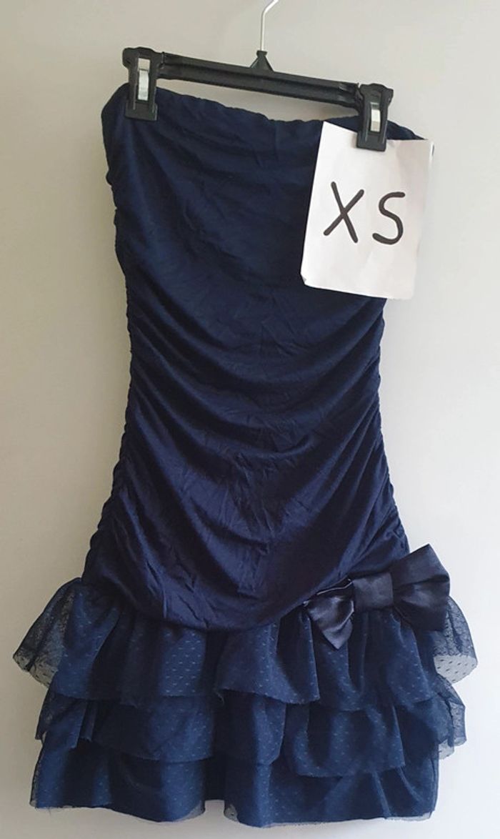 Robe bustier femme cérémonie femme taille XS #ann010203_femme_tailleXS_34 Portée pour 2 mariages seulement Naf naf bleu marine dentelle tulle