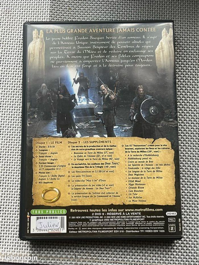 Vends double DVD, édition prestige,du film « Le Seigneur des Anneaux : La Communauté de L’anneau ». Le boîtier et les DVD sont en très bon état. Fonctionnent parfaitement. Il pèse 136g. Idéal pour les amateurs de cinéma, fans de la saga ou collectionneurs