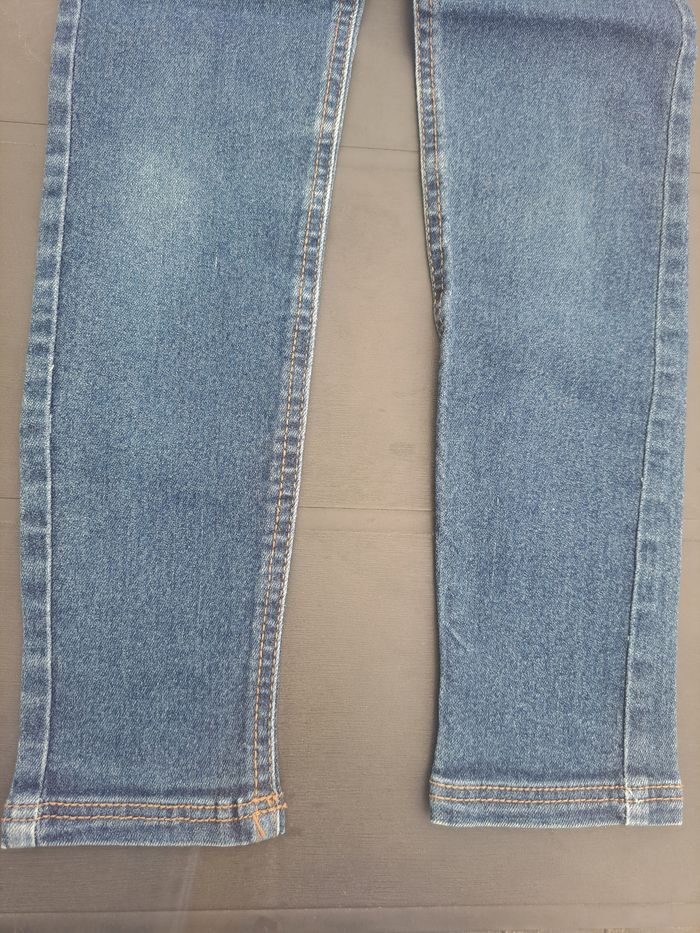 Peu porté. Skinny/Slim. Ferme avec 1 bouton glissière et une fermeture. Réglable à la taille. 3 poches devant et 2 poches plaquées derrière. Stretch. Pas de trou, ni de tâches.