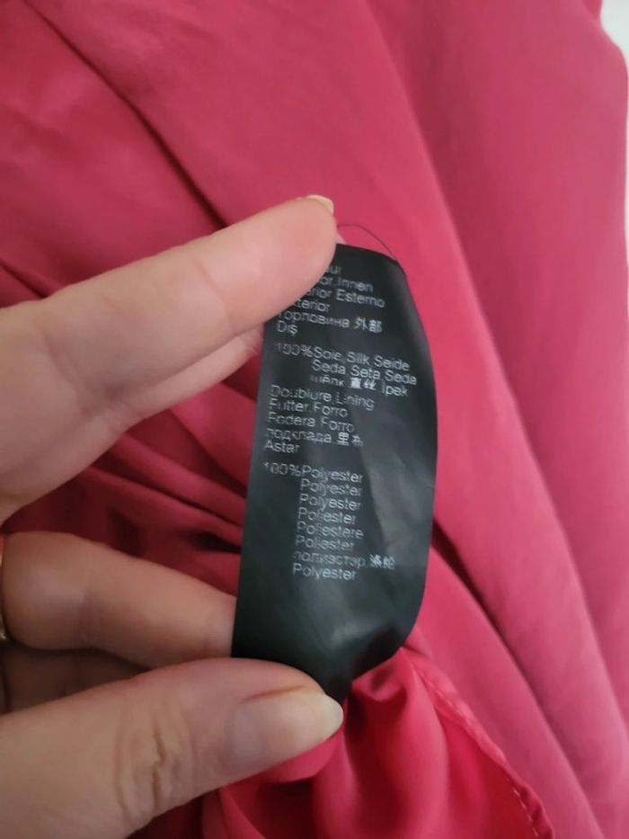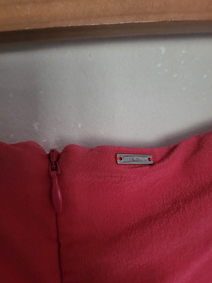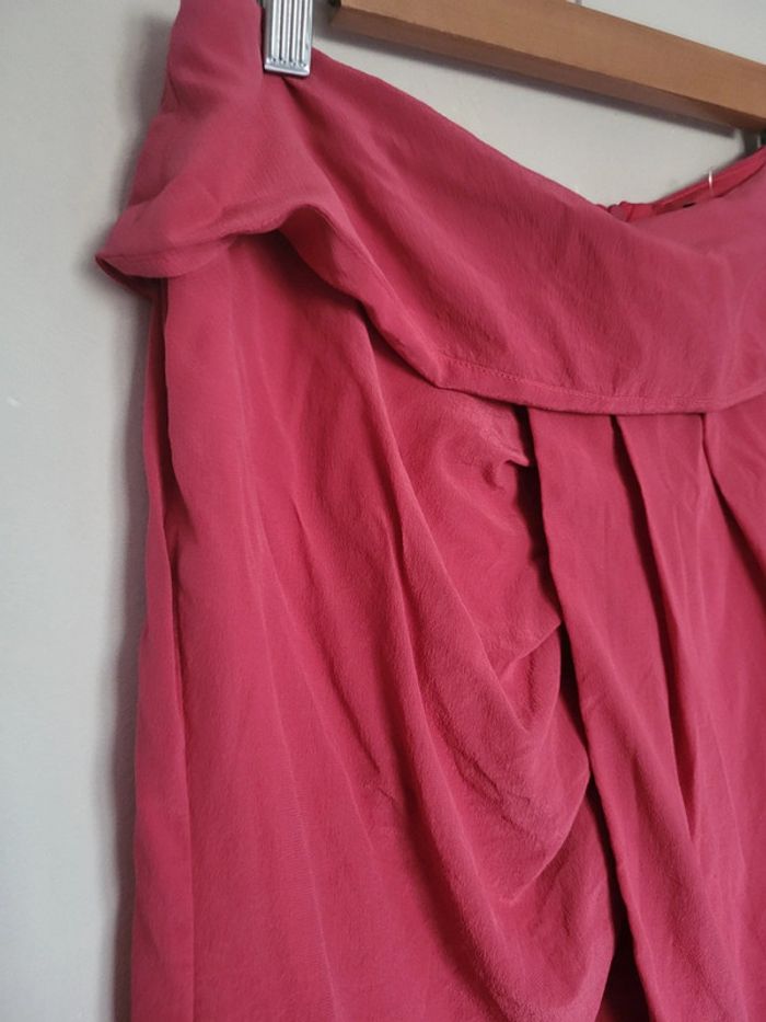 Jupe en soie courte, rose, très fluide, fermeture éclair dans le dos