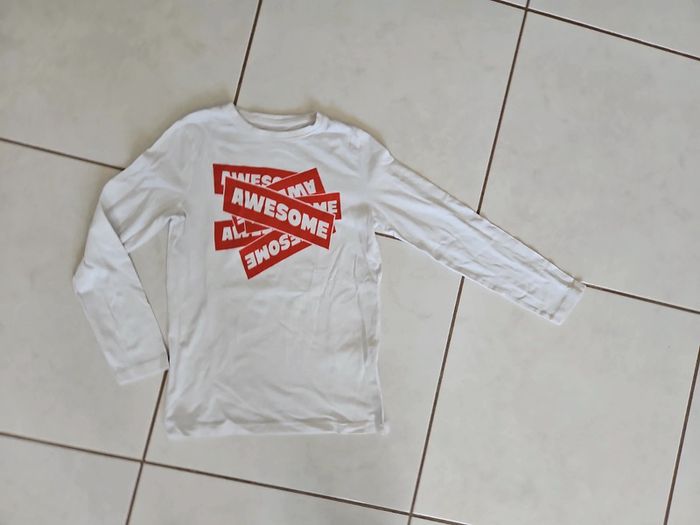 T-shirt manches longues garçon Blanc et rouge Awesome In extenso N'hésitez pas à aller voir mes autres ventes classées par #eloio #eloiogarcon10ans