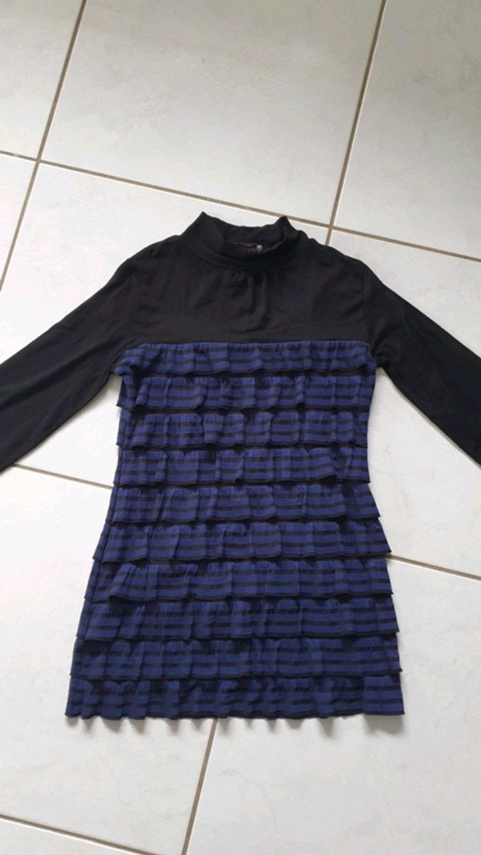 Robe manches longues Rayé à froufrous bleu marine et noire Vous pouvez voir mes autres ventes classées par #eloio 😉 #eloiofille10ans #eloiofille8ans