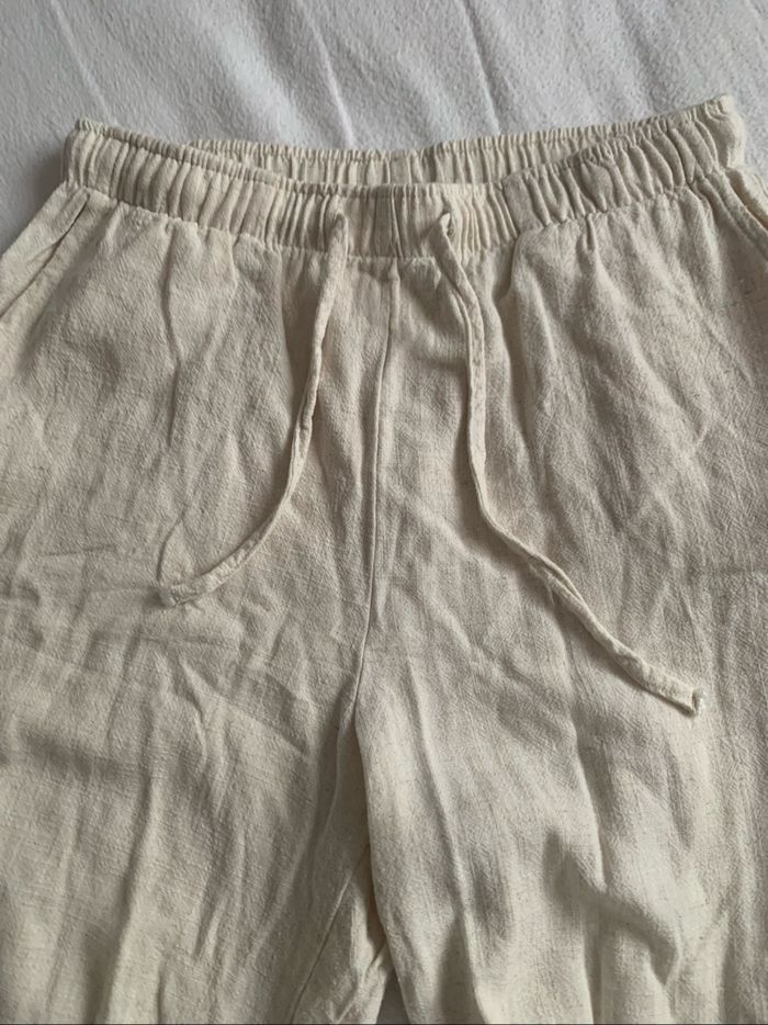 Pantalon beige, avec 2 poches devant, taille élastique avec cordon de serrage, taille S de chez Stradivarius