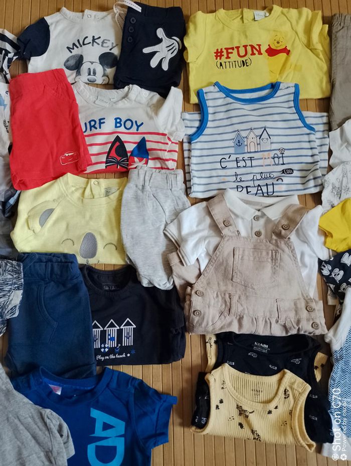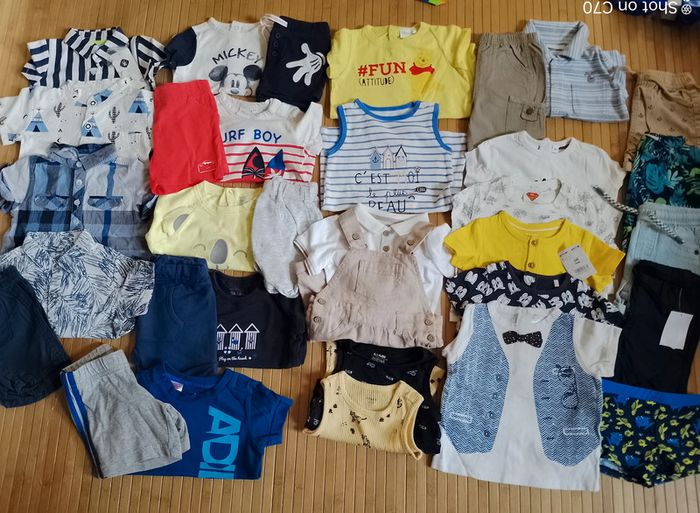 Lot bébé 6 mois été _ 7 ensembles short t-shirt _ 3 chemises manches courtes (2 neuves) _ 2 combi short barboteuses _ 1 salopette avec polo _ 5 t shirt (1 neuf ) _ 2 débardeurs _ 4 shorts (1 neuf) _ 1 maillot de bain Différents marques Adidas Burburry Kiabi DPAM Vertbaudet Disney Superman Tex Grain de blé Kimbaloo ...... Tout le 6 mois ici #angiolinolino_6mois