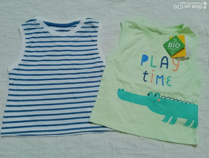 Lot 2 débardeurs Tex Jamais portés Rayures 9 mois Tout le 9 mois ici 👇 #angiolinolino_9mois