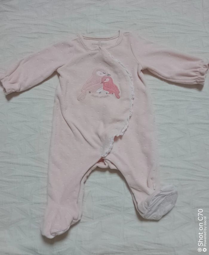 Pyjama rose velours sergent major Porté 2 fois Ouverture devant Oiseaux 1 mois 53 cm Tout le fille 1 mois ici👇 #angiolinolino_1moisfille