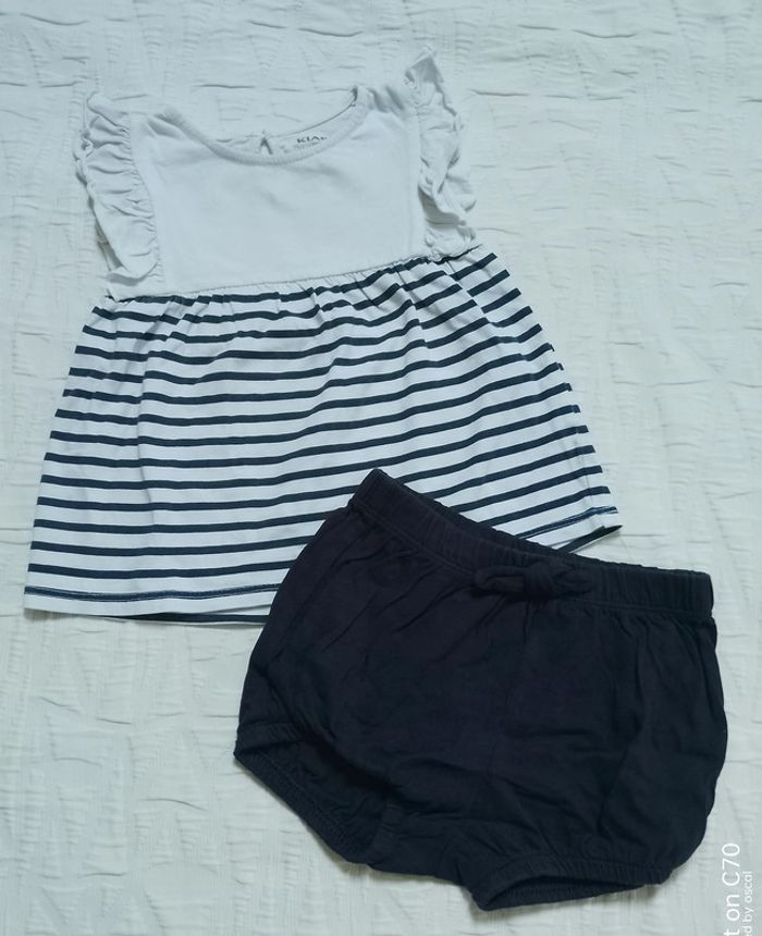 Ensemble Kiabi Haut t shirt rayures Short noeud le blanc a légèrement grisé 12 mois 73 76 cm Tout le 12 mois fille ici 👇 #angiolinolino_12moisfille