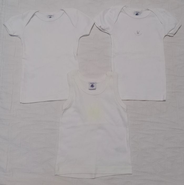Lot 2 maillot corps t shirt et 1 debardeur Marcel Petit bateau Porté 1 fois chaque 24 mois mais convient 18 mois Mixte Tout le 18 mois garçon ici 👇 #angiolinolino_18mois Tout le 18 mois fille ici 👇 #angiolinolino_18moisfille