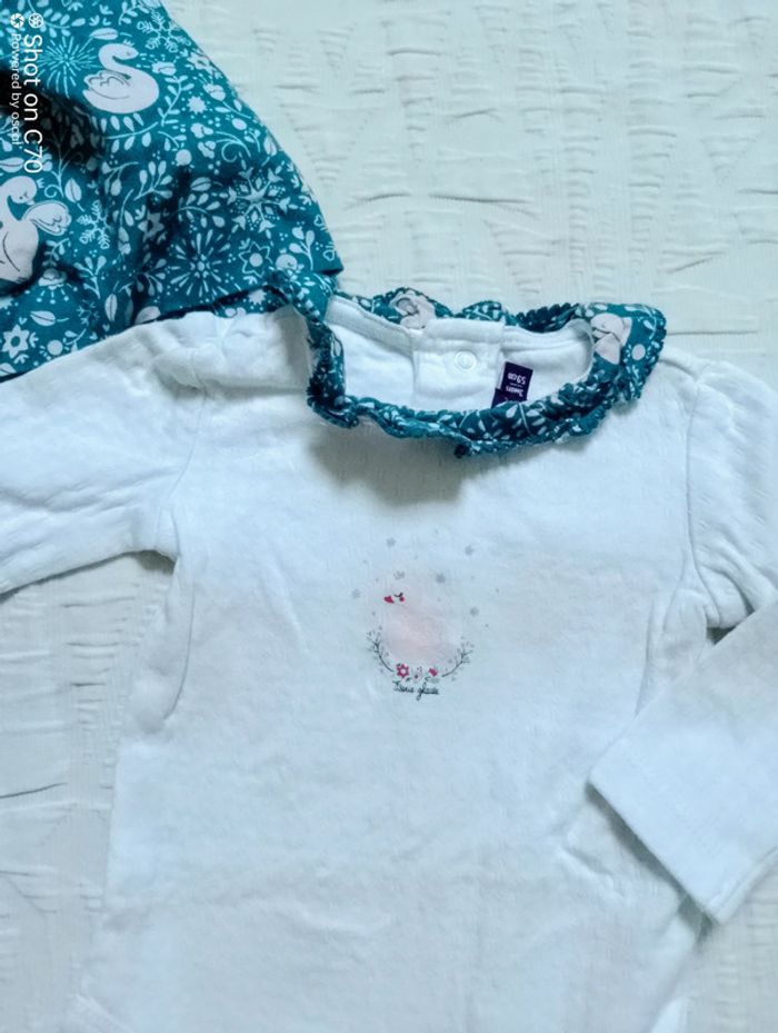 Magnifique ensemble Sergent Major 1 robe doublée polaire cygne fleurs s ouvre complètement dans le dos 1 bodie à col fleuri 3 mois Tout le fille 3 mois ici 👇 #angiolinolino_3moisfille