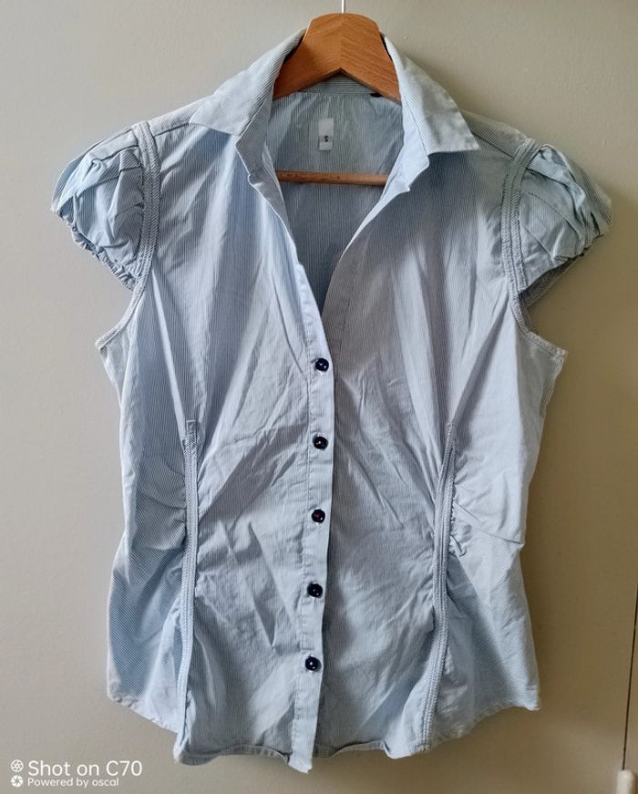 Chemise manches courtes Rayures fines Étiquettes coupées Taille 36 petit 38 Tous le femme ici #angiolinolino_femme