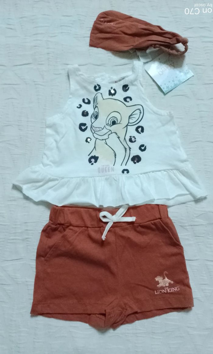 Disney ensemble haut short bandeau Nala roi lion 3 mois