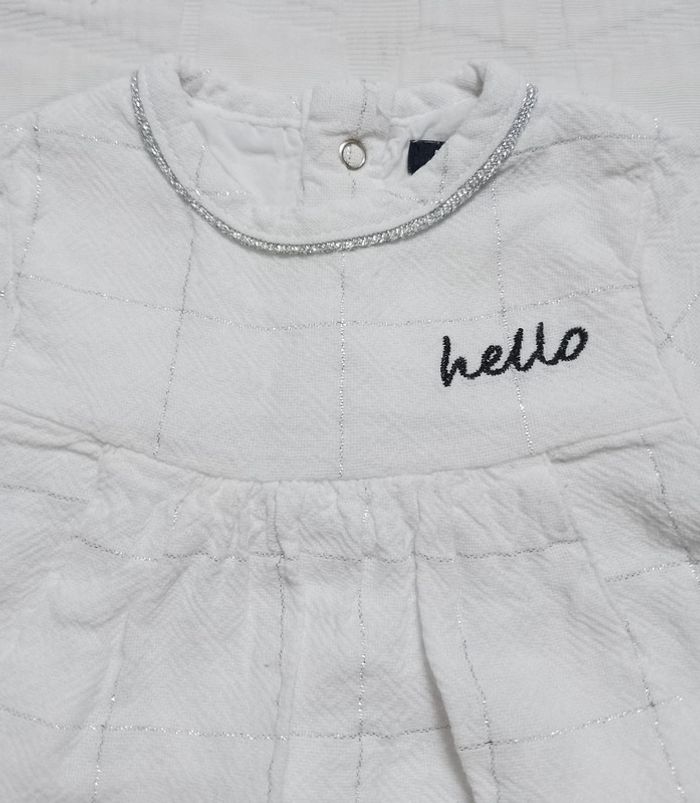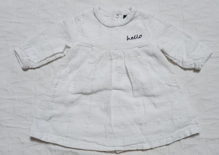 Jolie robe blanche Kiabi Portée 2 fois Fil argenté Hello Doublée 3 mois #angiolinolino_3moisfille