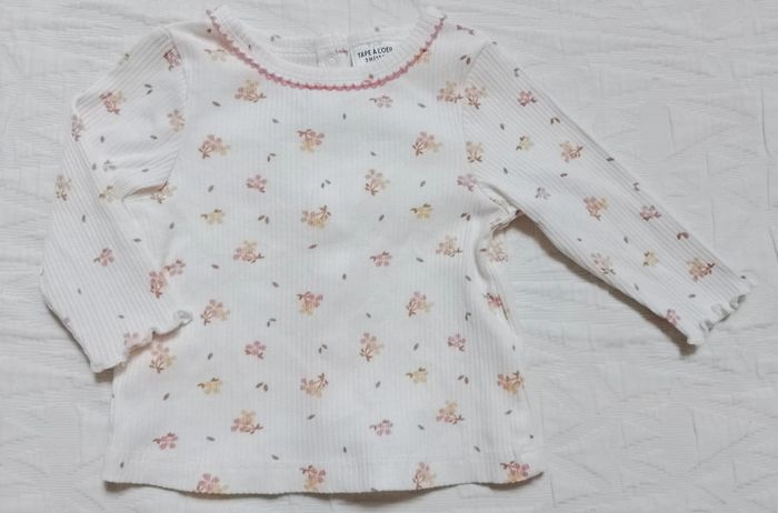 Haut t shirt Tape à l'oeil Tao Porté 1 fois Manches longues Côtelé fleurs 3 mois #angiolinolino_3moisfille