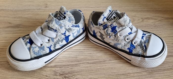 Converse bébé a scratch et élastique requin gris bleu Taiile: 19 Très bon état