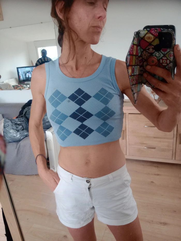 Top crop femme s bleu c85 - photo numéro 7