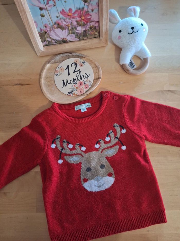 Pull de Noël pour fille taille 12mois marque mes petits cailloux très bon état - photo numéro 1